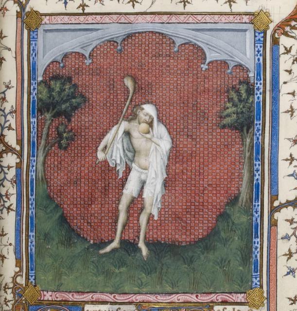 Zajímavé vypodobnění blázna najdeme v „Žaltáři vévody z Berry“, který vznikl kolem roku 1386 pro jednoho z nejvýznamnějších bibliofilů a mecenášů té doby. Na foliu 106r je v krajině (snad v údolí), která je orámována dvěma stromy, zobrazen stojící „blázen“, jenž podle textu popírá existenci Boha.