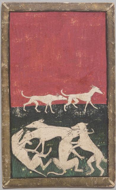 Z výše popsaného jasně vyplývá, že pozdně středověký člověk měl velice blízký vztah k psům, kteří patřili mezi nejoblíbenější společníky člověka. Bylo tomu tak i u anonymního umělce, jenž byl pověřen výzdobou hracích karet s barvou chrta. Navíc měl tento malíř nebývalý smysl pro humor, což se promítlo hned do podoby tří karet.