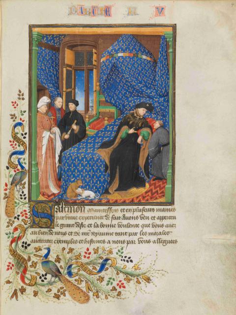(Traictés de Pierre Salemon a Charles VI roy de France, Paříž, 1412–1415, Bibliothèque de Genève, Ms. fr. 165, fol. 4r)