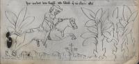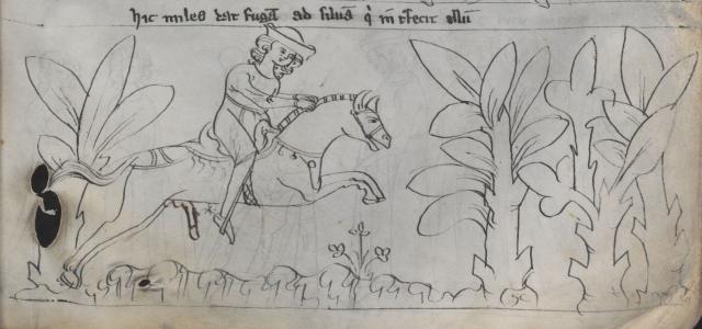 A právě s Podivenem je spjato i něco komického, co najdeme na předchozí straně, tedy na foliu 39r. Dole je zobrazen Podiven, jak na svém koni prchá směrem k lesu, který je naznačen kresbou tří stromů. To, co je na této scéně komického, ale nepochází z doby, kdy vznikl rukopis, nýbrž to bylo přikresleno až později. O co se jedná? Výše jsem uvedl, že se u koní nedá určit pohlaví. U Podivenova zvířete je tomu však jinak. Pozdější ruka totiž přikreslila jeho koni výrazný, dá se říci nepřehlednutelný pohlavní úd, takže máme před sebou ukázkového hřebce.