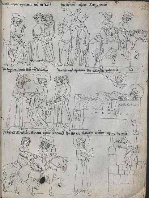 Krátce se zmiňme o třech legendách, které přibližují životy českých světců. Úplně první legendou rukopisu je Život sv. Václava. Popisky ke kresbám vycházejí z rozšířené verze latinské legendy „Ut annuncietur“. Většina legend končí světcovou smrtí, první legenda ale líčí i události po Václavově smrti. Vyobrazeno je celkem 125 scén. Svatý Václav se navíc ještě objevuje v Legendě o sv. Oldřichovi. Jeho život je zachycen v devatenácti scénách, hned v deseti vystupuje sv. Václav. Opravdu se mohli setkat. Oldřich se stal biskupem roku 923 a kníže Václav zemřel v roce 935. O jejich setkání ale neexistují žádné písemné doklady.