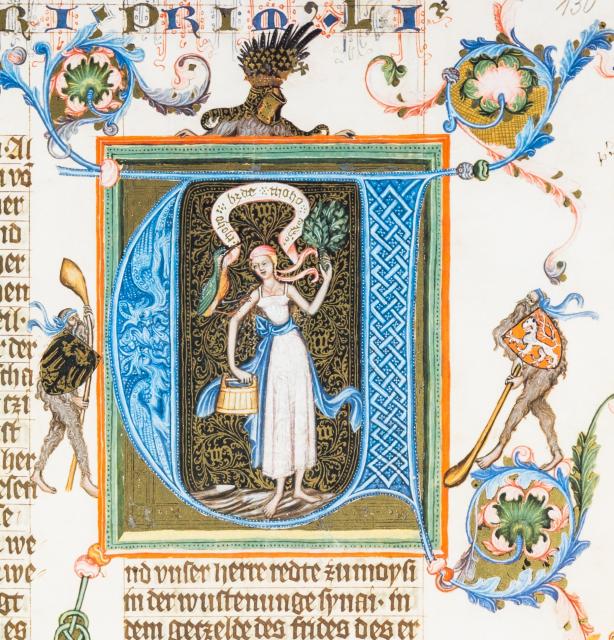 Velice oblíbeným motivem Václavových rukopisů jsou diví muži, kteří se v největším počtu vyskytují právě v nedokončené bibli. Najdeme je především v droleriích a také na dalších iluminacích, jež nemají nic společného s biblickým textem. Diví muži, srstí porostlé bytosti s dlouhými vlasy a vousy, již od antiky symbolizovali tělesnou sílu, nezkrotnou plodnost a sexuální touhy. Jejich srst má většinou hnědou barvu, ale objevíme i muže se šedou srstí a dokonce albíny. Někdy jsou dokonce dáváni do přímé souvislosti s králem Václavem, i když tato identifikace je velice problematická.