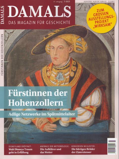 DAMALS. Das Magazin für Geschichte 7/2025, Fürstinnen der Hohenzollern. Adlige Netzwerke im Spätmittelalter, cena 8,20 euro