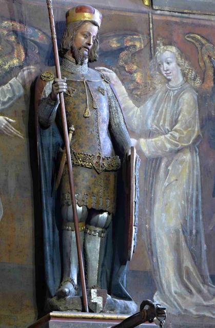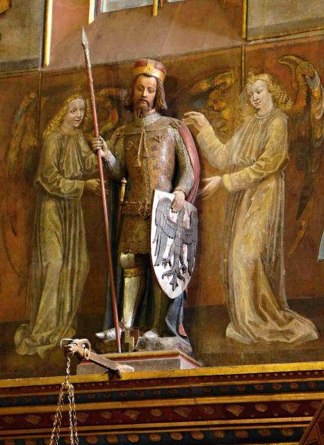 IK: Stejně jako Karel IV. využíval i on kultu sv. Václava k posílení své vlády. Ústřední scéna legendy o knížeti Václavovi vymalovaná v kapli za jeho vlády dokumentuje zásadní, byť ve skutečnosti zcela fiktivní politický úspěch přemyslovského knížete na říšském sněmu, a to jeho ustanovení sedmým kurfiřtem, tedy volitelem budoucího panovníka středověké říše římské. Malba měla manifestovat, že už od dob sv. Václava byl každý český vládce vždy respektovanou a mocensky důležitou osobou.