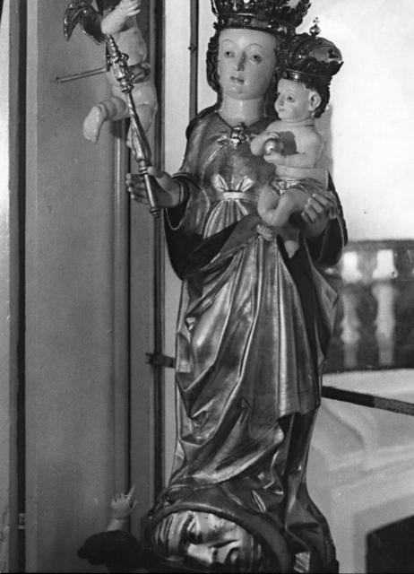 Dřevěnou sochu Madony strašínskému kostelu zřejmě věnoval koncem 15.století místní patronátní pán, jeden z nejmocnějších a nejbohatších českých velmožů té doby, držitel hradů Švihova a Rábí, králův rádce a nejvyšší sudí Království českého, vzdělaný Půta Švihovský. Tato Madona, skvělé dílo pozdní gotiky, výmluvně dokládala vytříbený a vybraný vkus urozeného dárce.