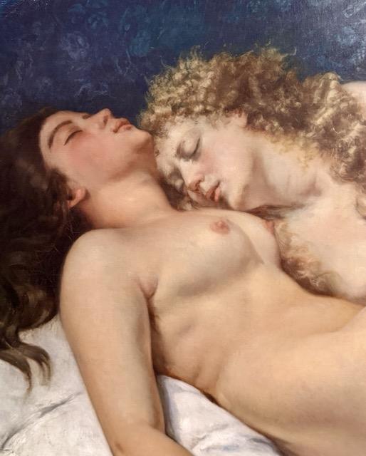 Erotickou atrakcí výstavy jsou díla, která Courbet maloval pro privátní „necudnou“ sbírku osmanského diplomata Chalil Beje (psaný též anglicky jako Khalil Bey), velkého sběratele umění a vášnivého hazardního hráče. Je to nejen proslulý obraz Spánek, zobrazují nahou černovlásku a blondýnku, jak spolu spí spánkem zapomnění (ze stálé expozice Petit Palais v Paříži DETAIL NA REPRODUKCI), ale také ženský klín nazvaný Počátek světa, nejprovokativnější obraz 19. století, který Musée d'Orsay zapůjčuje do zahraničí také jen výjimečně. Vídeň je čtvrtou výstavou, kam se obraz dostal!