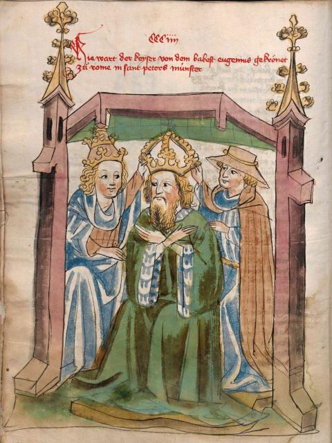 Při svém pobytu v Římě se císař Zikmund Lucemburský často setkával s Evženem IV. a nakonec se oba muži sblížili. Tehdy měl Zikmund prohlásit: „Tři jsou věci, nejsvětější Otče, ve kterých se nesnášíme, a opět tři, kde se shodujeme: ty ráno spáváš, já přede dnem vstávám; ty vodu piješ, já víno; ty žen se štítíš, já po nich se sháním. Ale v tom se snášíme, že ty štědře rozdáváš poklady církevní, a já ničeho sobě nenechávám; ty máš špatné ruce, já špatné nohy; ty kazíš církev, a já Říši svatou.“ Jejich sblížení bylo takové, že se Zikmund snažil papeže chránit i před basilejským koncilem, který nepřestával na papeže útočit.
