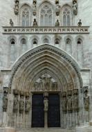 Navíc se čtyřmi postavami, jejichž autorem byl erfurtský Mistr náhrobku sv. Severina, souvisí i další sochařská výzdoba, hlavně pak scéna Klanění tří králů s Pannou Marií s dítětem na rukou umístěná za císařským párem na konzolách. Je možné, že sochař pojal scénu Klanění tří králů jako předobraz holdu, jenž je zachycen u zábradlí. Divák tak měl pochopit, že císař se svou chotí přijímají hold v zastoupení Krista a jeho matky. Na úplném vrcholu jižní fasády je pak ještě zobrazen v redukované podobě Poslední soud s Kristem-soudcem v mandorle, jehož autorem je stejný sochař jako u císařského páru.