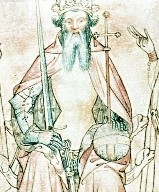 Je více než jasné, že Karel IV. je na iluminaci zachycen pouze jako římský císař. Českým králem je pak jeho syn a nástupce v jedné osobě, Václav IV., který byl na českého krále korunován již v roce 1363 v pouhých dvou letech. Římským králem byl pak zvolen a korunován v roce 1376. Zajímavý je i jeden detail: tvář českého krále je bezvousá, což můžeme brát jako důkaz panovníkova mladého věku, který chtěl autor iluminace zdůraznit. Jeho tvář je tak dána do kontrastu se stařeckou a vousatou tváří jeho otce.