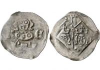 V letech 1373/1374-1378 se pak mince razila v Erlangen (obr 4). K hlavní změně došlo na lícní straně, kde je hlava na cimbuří umístěna mezi písmena K (Karolus) a E (Erlangen). Mince o průměru 18 mm vážila většinou kolem 0,76 g.