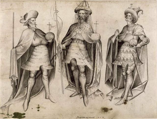 Kdo jsou panovníci doprovázející římského krále Zikmunda Lucemburského? Starším vladařem je nejpravděpodobněji Jan VIII. Palaiologos, jenž byl od roku 1425 do 1448 byzantským císařem. Do současnosti se nám dochovalo několik jeho vyobrazení, která odpovídají jeho zobrazení na kresbě. V roce 1424 strávil celkem osm týdnů v Budíně. Ve stejné době se v Budíně vyskytoval i Zikmundův bratranec Erik Pomořanský, švédský, norský a dánský král, který v roce 1424 byl na cestě do Orientu. Je tedy vysoce pravděpodobné, že se tito tři panovníci v Budíně setkali a při této příležitosti, či krátce po jejich setkání vznikla i výše popsaná kresba.