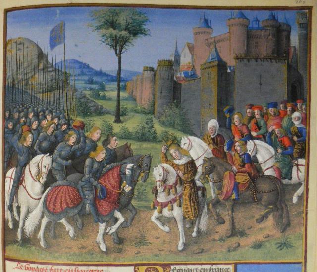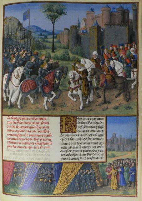 Na foliu 260r narazíme na zajímavou miniaturu, jež se vztahuje k událostem roku 1396. Na dvou třetinách pergamenového listu je vyobrazeno setkání uherského krále Zikmunda Lucemburského, nevlastního bratra tehdejšího českého a římského krále Václava IV., se synem burgundského vévody Filipa Smělého, Janem z Nevers. Scéna se odehrává před Budínem, Zikmund Lucemburský vyjíždí vzácnému hostu naproti před brány města.