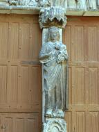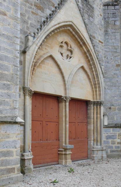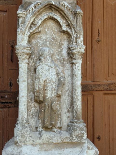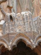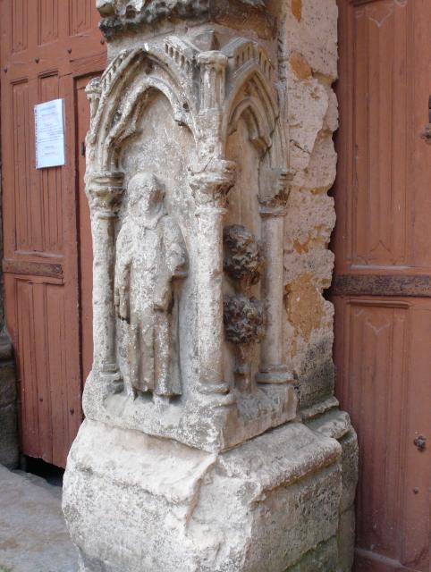Gotický portál z poloviny 13. století ve francouzském městečku Villeneuve l´Archevéque, kde v roce 1239 převzal král Ludvík IX. trnovou korunu (fotodokumentace ke knize Kristova trnová koruna, Stavitelé katedrál 2)