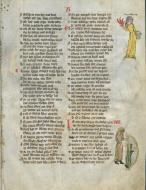 PS: Obrazový doprovod výše zmíněných veršů najdeme také v dalších, bohatě zdobených opisech básně, jen se mění podoba „pasti“, do níž je láskou omámený muž chytán. Pro srovnání přinášíme scénu z výše zmíněného rukopisu, který je dnes uložen v durynském městě Gotha (fol. 14r). MZ