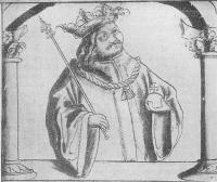 V Schedelově(37) Světové kronice z roku 1493 je vyobrazen typ krále,(38) který nebýt označen jménem, mohl by být považován za někoho zcela jiného. Nenese totiž rysy českého krále Jiřího z Poděbrad, jak je nám přinášejí písemné prameny a objevují se i na některých dalších „obrazech". Je pravděpodobné, že ve druhé třetině 15. století vznikl typ vyobrazování husity, husitského hejtmana, který pak mohl být přenesen také do „obrazů" jiných, pozdějších husitů, jejichž králem Jiří z Poděbrad bez pochyby byl.