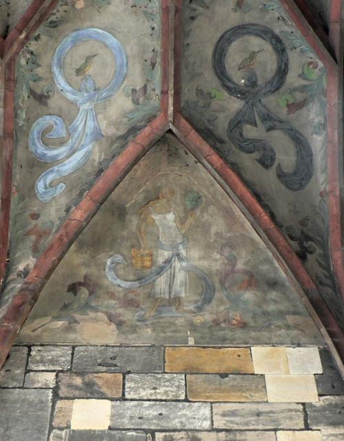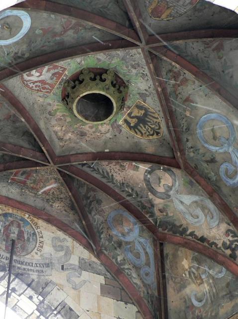 Klenba průjezdu a vlastně celá sochařská výzdoba je dílem huti Petra Parléře. Klenba přímo odkazuje na klenbu vysokého chóru Svatovítské katedrály. V jejím středu je pak místo svorníku zobrazena královská koruna, jež je reprezentací královské moci. V průjezdu se dochovaly také původní gotické malby zobrazující Václavovy lazebnice v bílých košilkách s věníky a vědry v rukou, nechybí ani četné točenice s ledňáčky. Málokdo z procházejících si všimne namalovaného veraikonu neseného dvěma anděly. V letech 1877 a 1878 malby zrestauroval a domaloval Petr Maixner.
