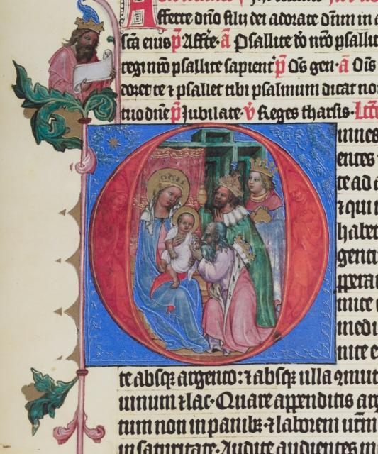 Z hlediska ikonografie Karla IV. je důležitá figurální iniciála O na foliu 97r. V iniciále O(mnes) je zobrazena scéna Klanění Tří králů. Tři králové (původně mágové) zastupující tři věky lidského života přinášejí dary Ježíškovi. Při bližším pohledu na samotné krále nás nejvíce zaujme prostřední stojící panovník. S vysokou pravděpodobností se jedná o kryptoportrét Karla IV.